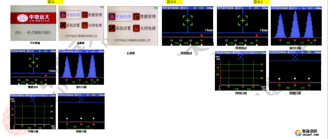 厚度模式、網格模式、剖面模式、波形模式、 JGJ檢測 |