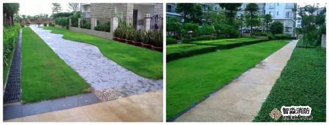 4 中心軟化:在消防車道的中心軸線種植低矮植物或草皮,既不會影響消防車輪的行駛,又美化、軟化了消防車道。可選擇種植小型花灌木等矮地被植物,這類灌木長不高,且常年開花,關鍵是其不會影響消防車的通行。