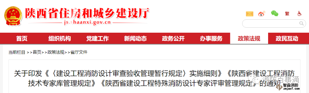 陜西實(shí)施住建部第51號(hào)令,印發(fā)了《〈建設(shè)工程消防設(shè)計(jì)審查驗(yàn)收管理暫行規(guī)定〉實(shí)施細(xì)則》、《陜西省建設(shè)工程消防技術(shù)專(zhuān)家?guī)旃芾硪?guī)定》、《陜西省建設(shè)工程特殊消防設(shè)計(jì)專(zhuān)家評(píng)審管理規(guī)定》三份文件。