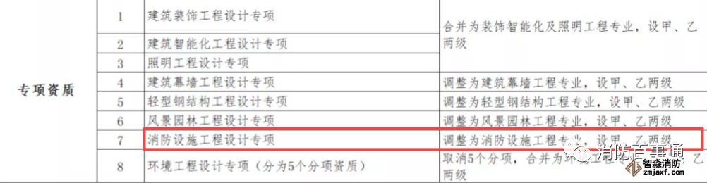專項設計資質(zhì)中,將消防設施工程設計調(diào)整為消防設施工程專業(yè),設甲、乙兩級。