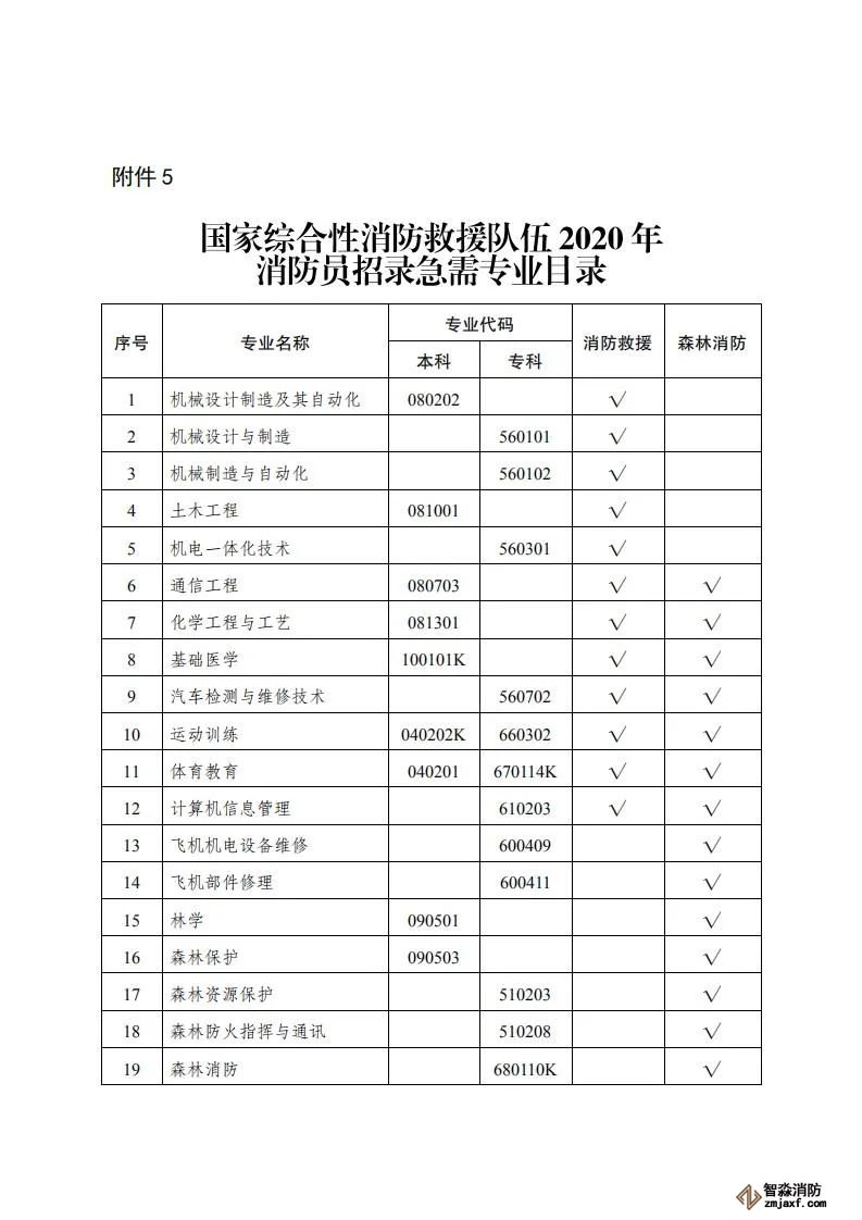 5.國家綜合性消防救援隊伍2020年消防員招錄急需專業目錄