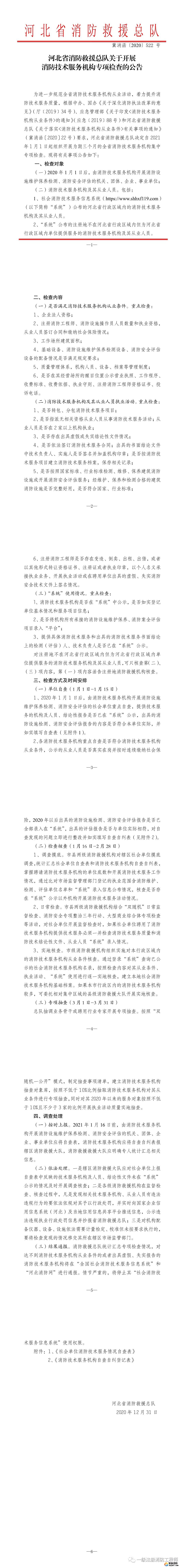 【河北省消防總隊(duì)】1月16日-2月28日開展消防技術(shù)服務(wù)機(jī)構(gòu)專項(xiàng)檢查