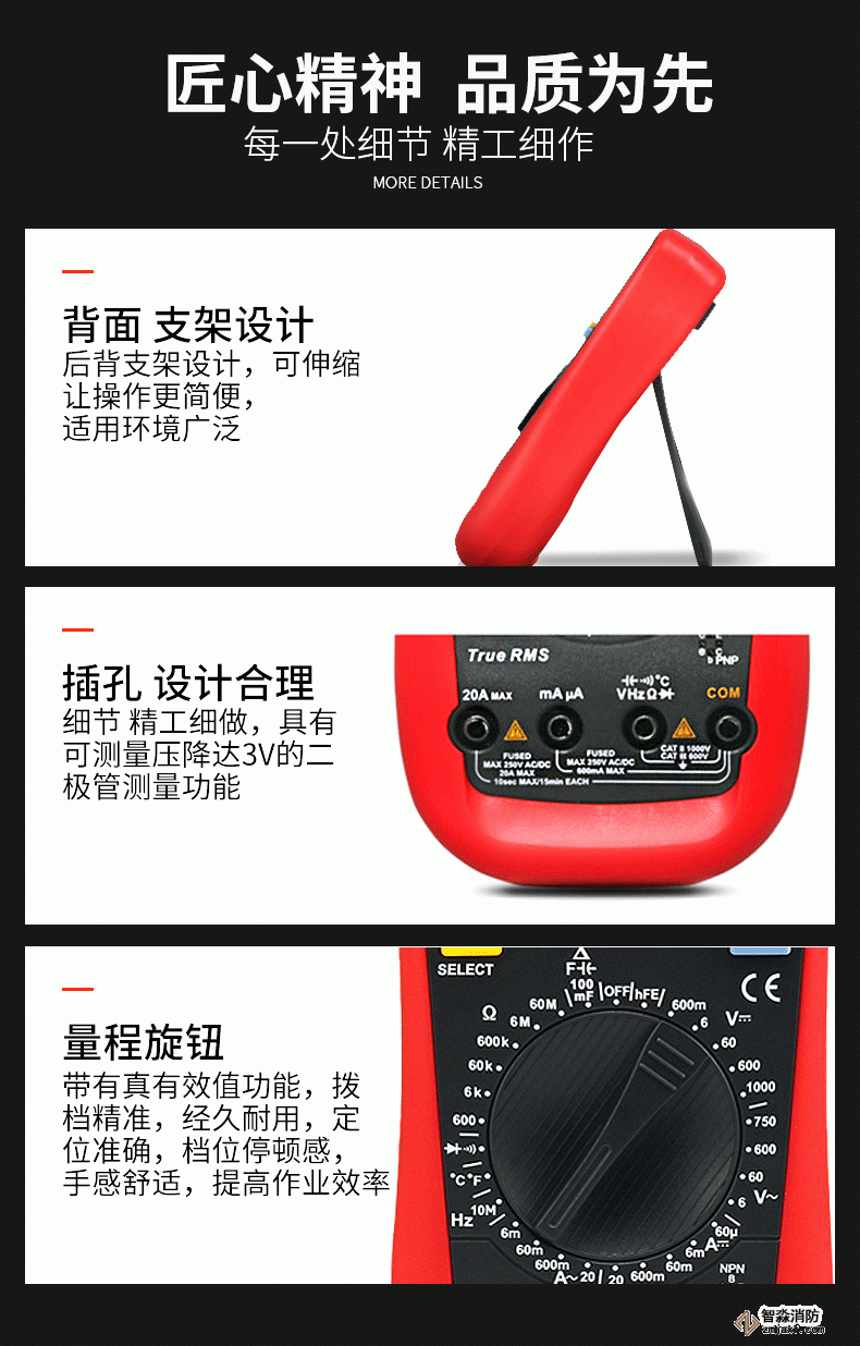 9.全量程600V保護(hù):能在量程范圍內(nèi)隨意操作不會(huì)損壞儀表