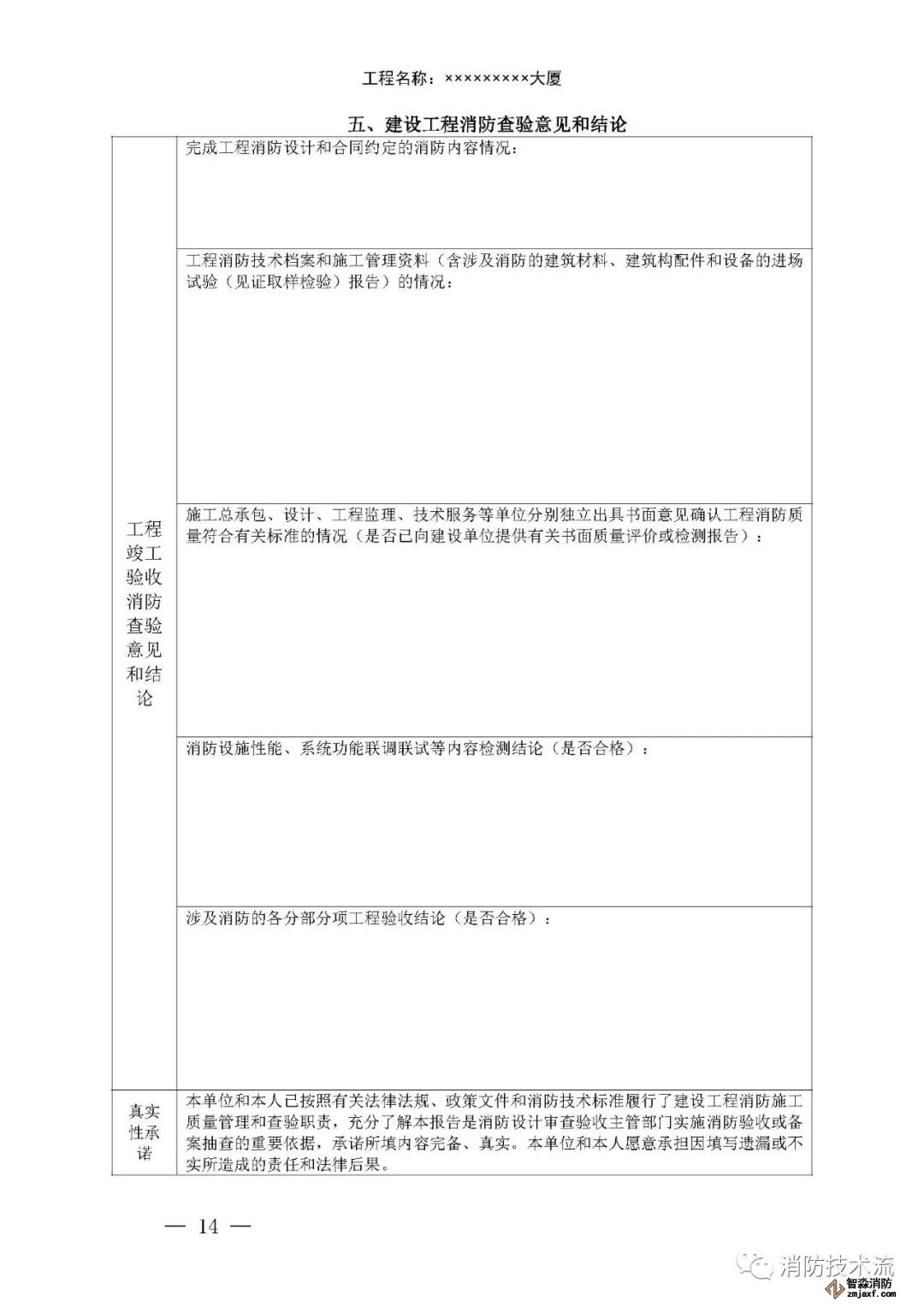 其中附件2和附件5中的填表說明均表示: 建設單位如未直接和符合從業條件的技術服務機構訂立委托合同,在施工過程中自行完成消防設施檢測,或在建設工程竣工驗收消防查驗時自行完成中 消防設施性能、系統功能聯調聯試,則本報告中 “ 技術服務機構 ” 一欄由建設單位及其項目負責人蓋章、簽字,并承擔相應責任和法律后果。
